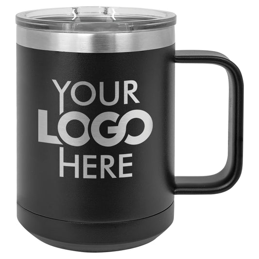 BULK 15oz Stainless Steel Custom Laser Engraved Coffee Mugs With Slider Lid - Free Shipping!