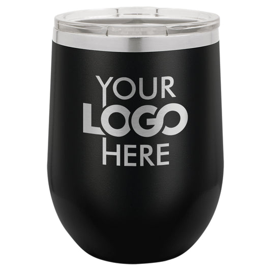 BULK 12oz Stainless Steel Custom Laser Engraved Wine Tumblers With Lid - Free Shipping!